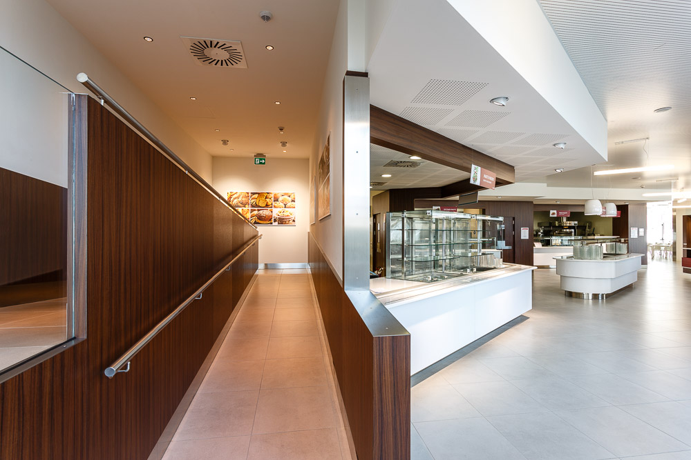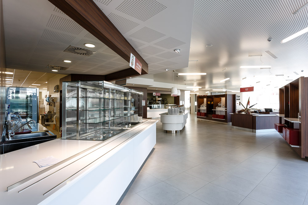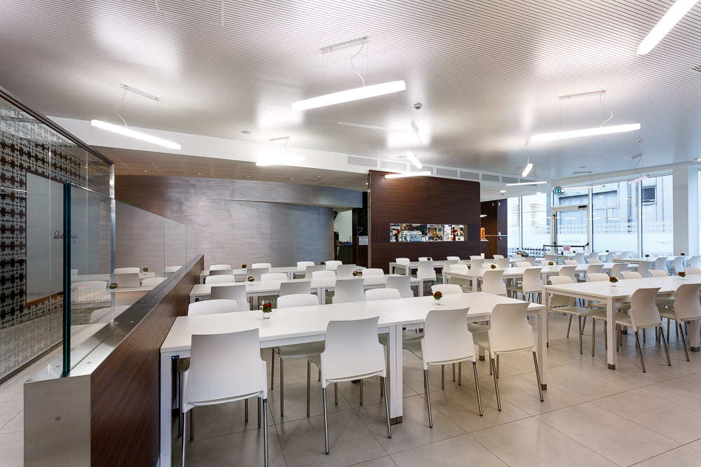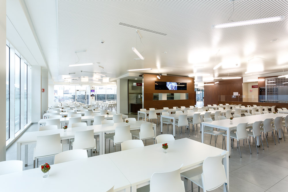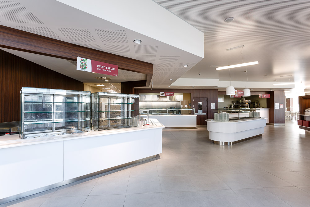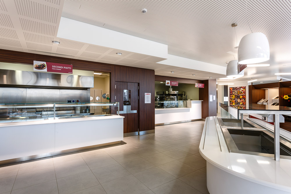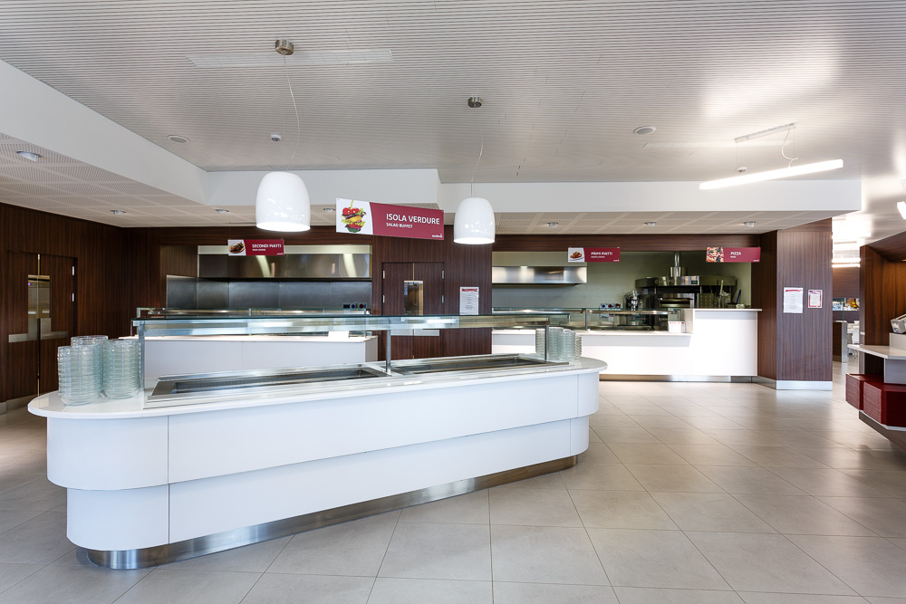 La mensa aziendale rappresenta uno spazio di supporto alla vita lavorativa quotidiana. Le fotografie realizzate restituiscono l’organizzazione funzionale dell’ambiente, mettendo in evidenza proporzioni, layout e qualità architettonica.